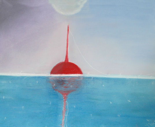Evert Jan van Emst - 22 mrt 1970Op de tekening zie je een dobber in het water liggen; wat vooral opvalt is de verdeeldheid in de tekening.